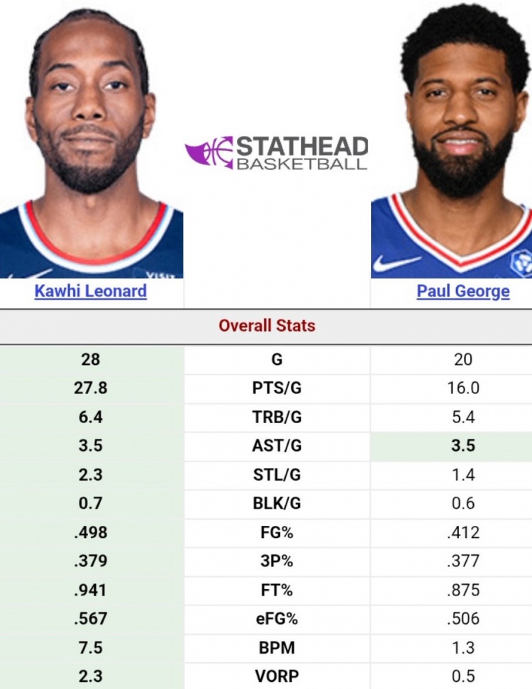 小卡VS乔治本赛季数据对比:小卡全方面包围 甚至多打了8场